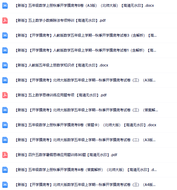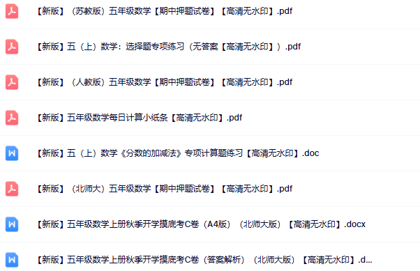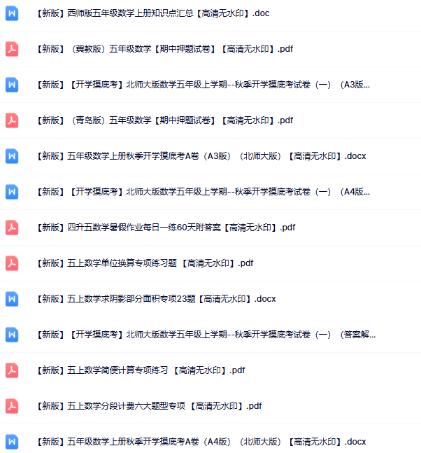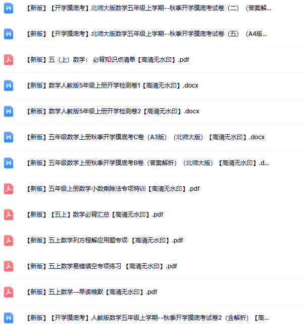 | 🚀【60份精品打包】五年级数学上册新版资源免费一键下载!高清无水印,永久收藏,备考复习秒提速!点击立即获取,让孩子赢在开学起点! | |