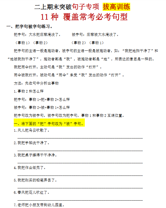 | ✨一键快速保存,16份高清无水印二年级上册语文句式训练汇总版!高清排版原汁原味,句式专项强化训练,让孩子轻松掌握语言表达技巧,家长教师速存必备!立即点击高清无水印整理包,一键获取高效学习资源! | |