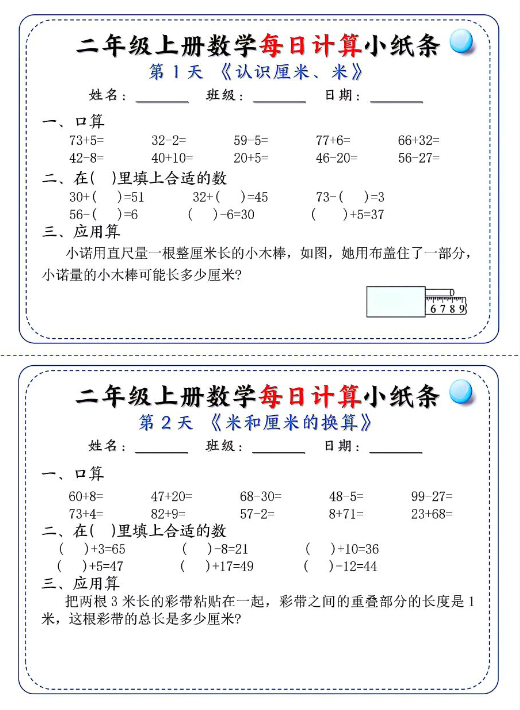 📝每日一练口算卡+应用题模板,提升计算准确率