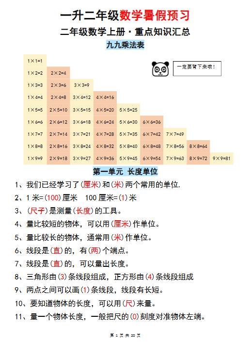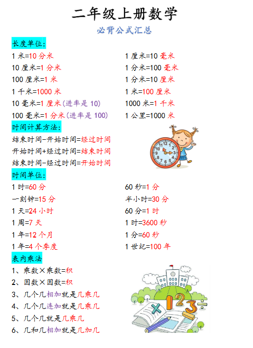 ✅按知识点分类整理:100以内加减法、表内乘法、方向与位置、长度单位等