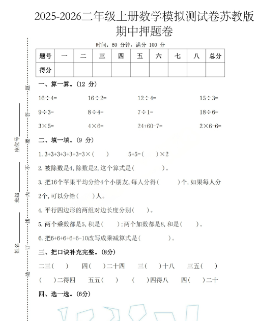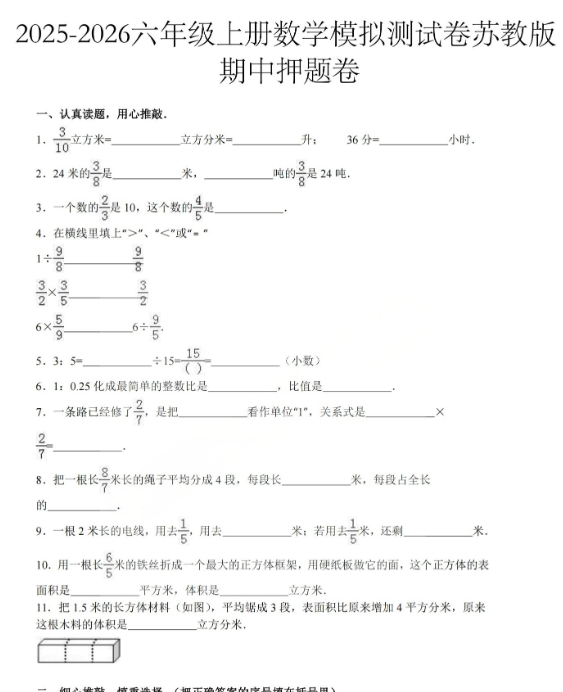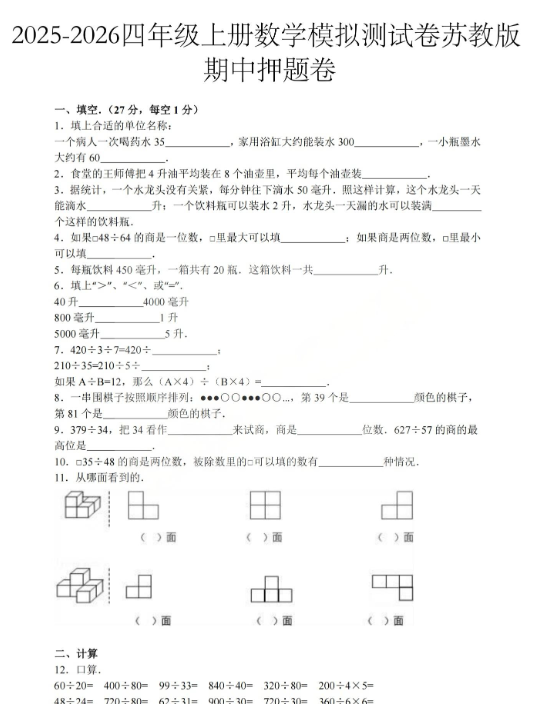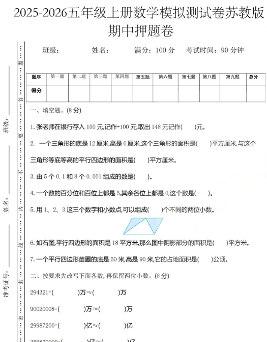 | 一键保存高清版!最新苏教版1-6年级期中卷打包整理,全科同步考点全收录,复习冲刺高效又省心,错过再无!点击立即一键下载,让孩子抢先掌握核心知识点! | |