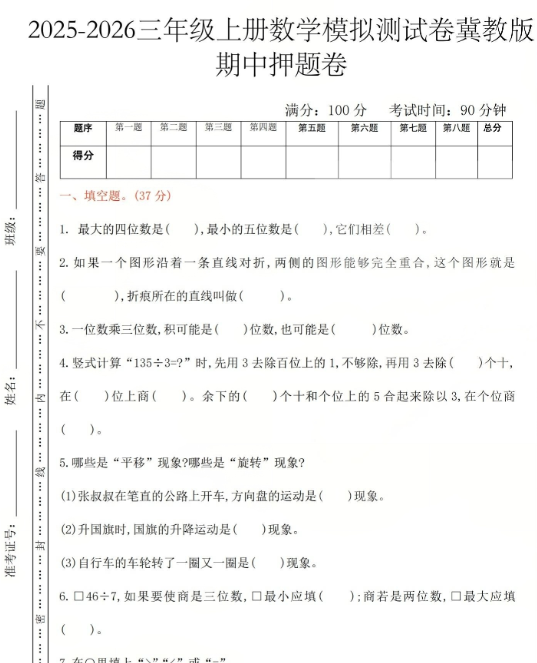 | 一键极速保存,最新冀教版1-6年级期中卷打包整理高清版!完整单元检测题库全覆盖,家长/教师必备资源包,错过再无!点击立即下载,抢先获取高清试题资料! | |