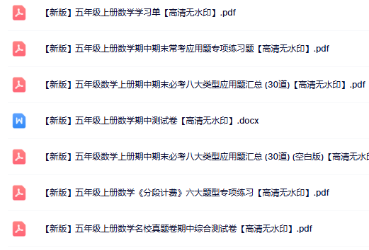 | 26份五年级数学上册热门资料打包下载【高清无水印】——学霸提分必备神器 | |