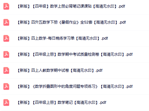| 29份四年级数学上册热门资料一键打包下载!高清无水印,秒存秒用,备考预习无忧!点击立即获取小学高分学习神器,错过再无! | |