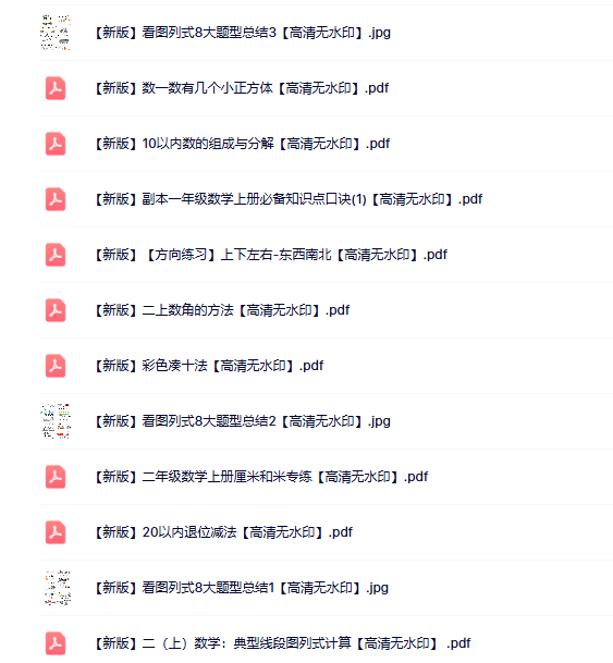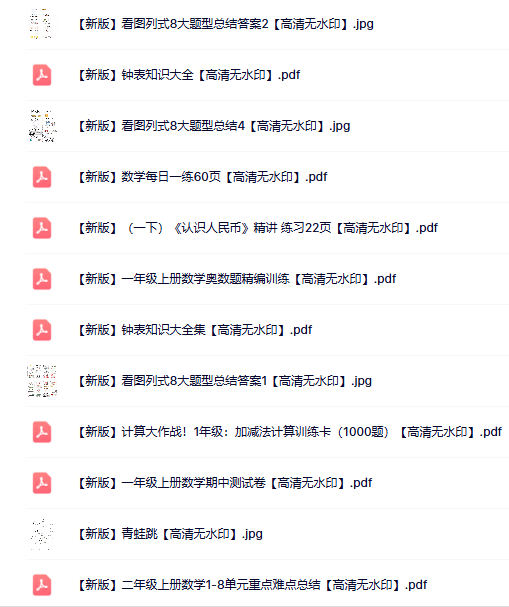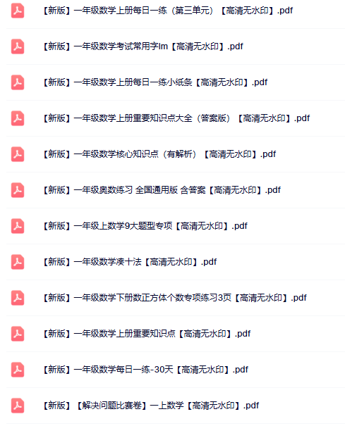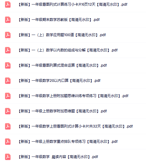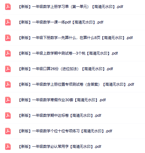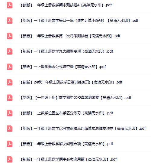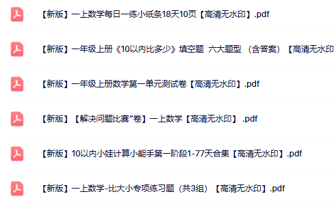 100份一年级数学上册热门资料一键打包下载!高清无水印,秒存秒用,零障碍获取小学必备练习题与教学神器!抢先下载,让孩子赢在数学起跑线!