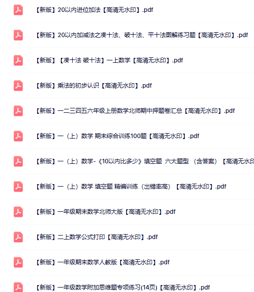 100份一年级数学上册热门资料打包下载【高清无水印】