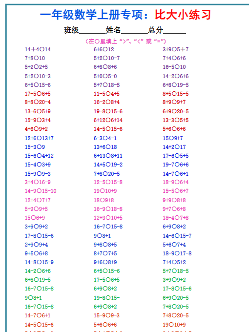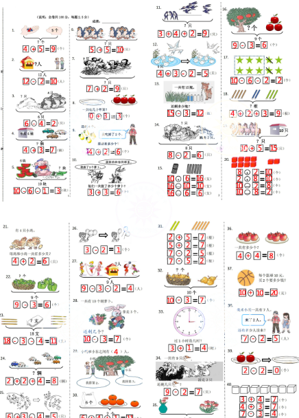 ✅ 覆盖全学期知识点:数数、比较、加减法、应用题等核心章节