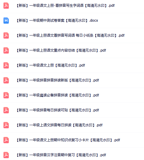 | 100份一年级语文上册全套热点资料(高清无水印)— 一键打包极速下载,告别繁琐搜索! | |