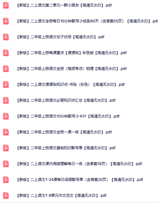 | 64份二年级语文上册热门资料打包下载【高清无水印】——小学教师备课神器,家长辅导自学必备 | |