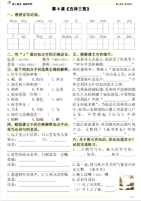 覆盖全单元课文,配套练习层层递进,适合每日一练