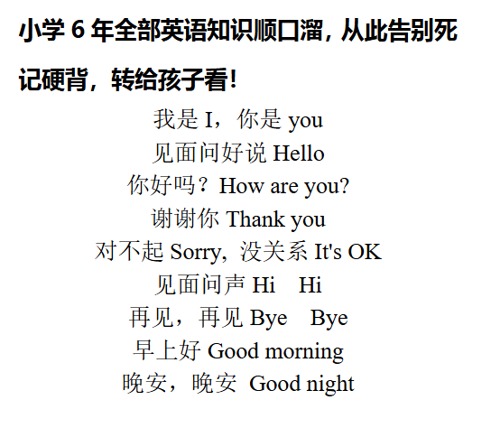 | 【16页新版】小学6年全部英语知识顺口溜,从此告别死记硬背,转给孩子看!【高清完整版】 | |
