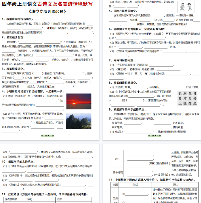 | 【17页完整版】四上语文5-8单元核心考点默写单(期末高清可直接打印) | |