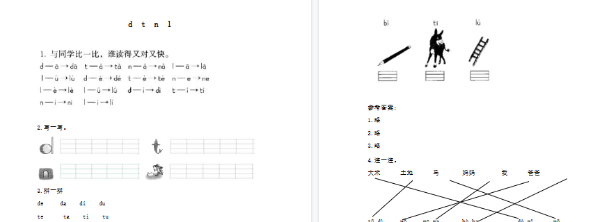 | 【高清可打印】拼音d t n l专项练习2页,立即一键下载,打好发音基础不拉队! | |