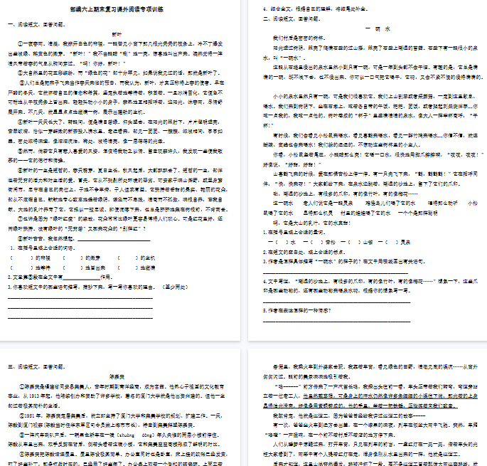 | 一键秒存高清版!22页统编版语文六年级上册课外阅读专项训练(含答案解析),直接打印即用,练透考点提分无忧,限时免费极速下载! | |