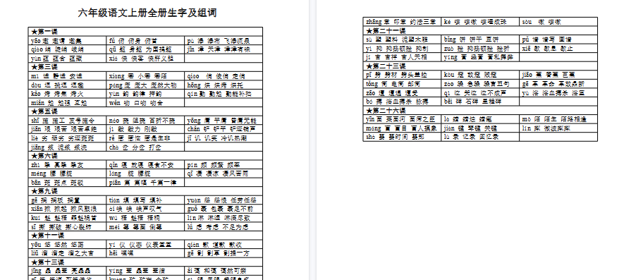 | 【2页完整版】部编版小学六年级语文上册全册生字及组词【高清版可直接打印】 | |