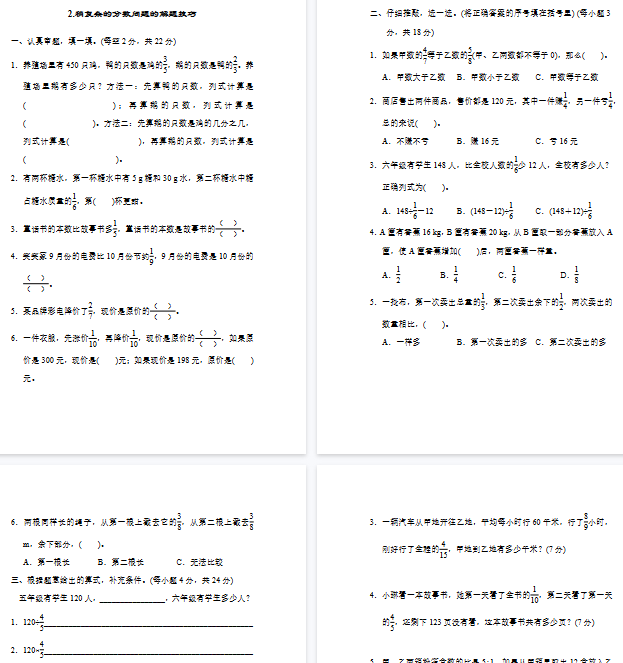 | 【6页完整版】稍复杂的分数问题的解题技巧【高清版可直接打印】 | |