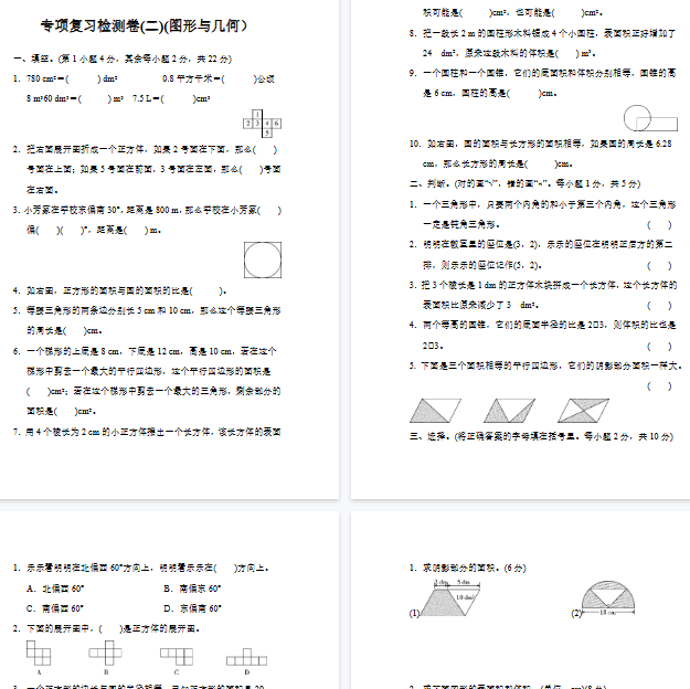 | 一键极速下载!人教版数学六年级下专项复习卷(图形与几何)📐9页完整高清版✅直接打印,备战期末冲刺必备用卷!限时免费获取,高分轻松拿捏! | |