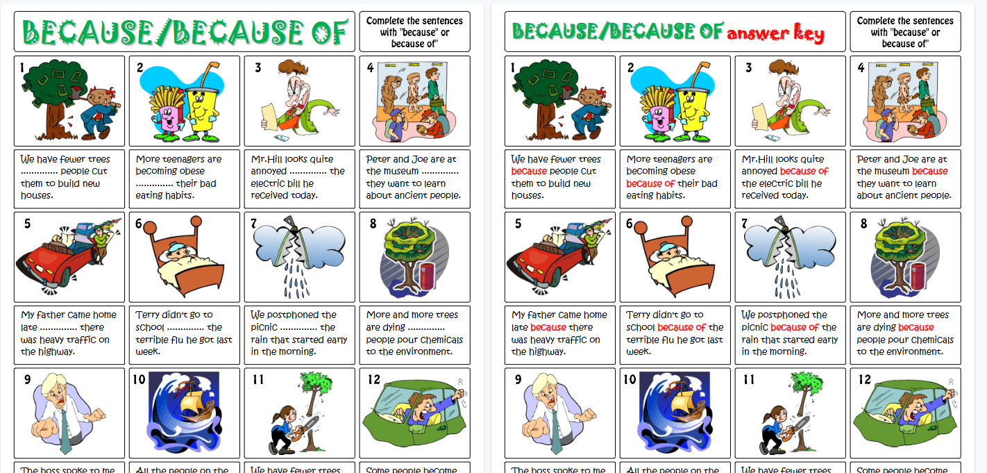 | 🔥 立即一键下载高清彩色版《because and because of》63套可打印ESL语法作业纸!打好语法基础,高效提分无忧! | |