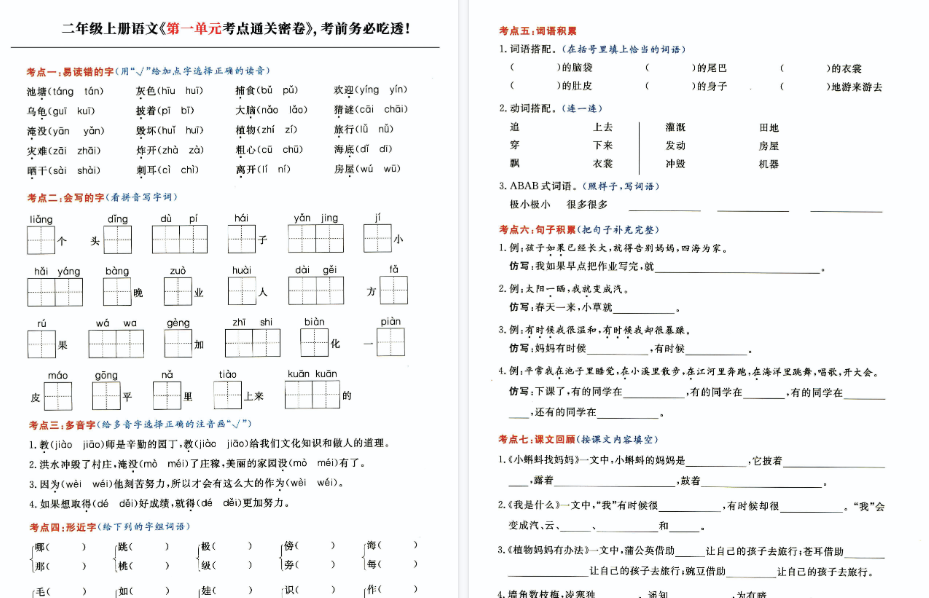 | 【20页完整版】二(上)语文《单元考点通关密卷》——精准锁定考点,高频提分秘籍 | |