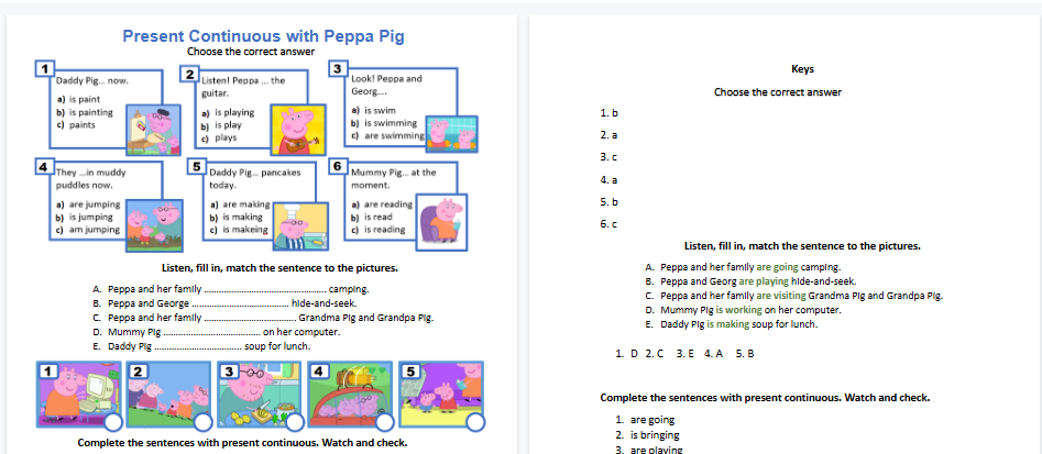| ✨一键快速保存,全网最清晰【小猪佩奇语法练习纸】高清彩色版仅需2页! printable完整版直接打印,萌趣动画+互动练习,让孩子轻松掌握现在进行时语法,限时免费领取,错过再无!立即点击,一键下载高品质英语启蒙资源! | |