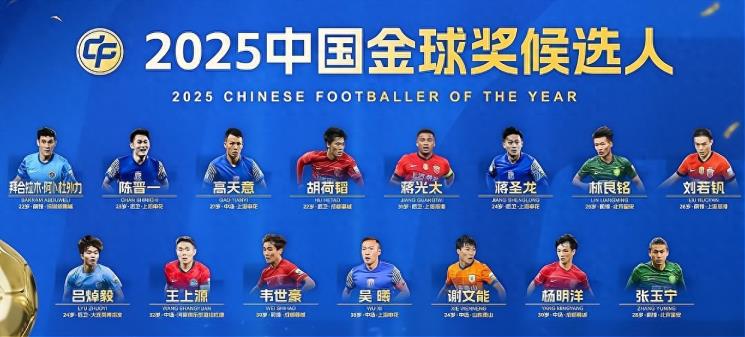 2025中国金球奖候选名单由《体坛传媒》于12月15日公布,共15人,其中包括一些令人惊讶的候选情况。