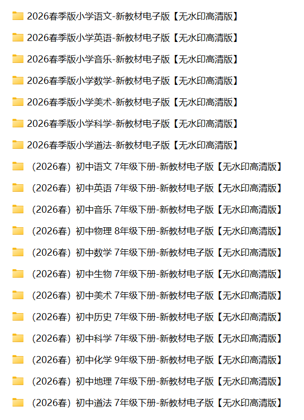| 2026小初高春季高清电子版教材|全网首发|永久收藏|实时更新 | |
