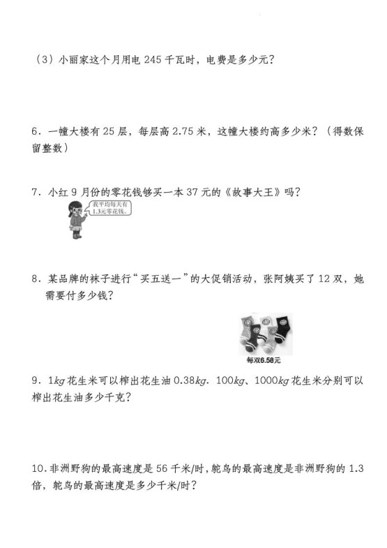 | 四下北师大版数学【期中重难点应用题-小数乘法专项突破-空白】 | |